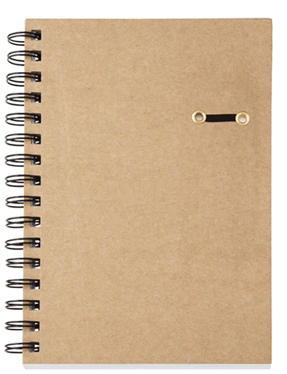 Features: Recycled journal made of cardboard with a spiral binding. The cover has an elastic pen loop (no pen included). 80 ruled ivory sheets, made of 50% recycled paper, are included.