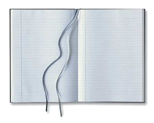 Product Info: Large hardcover notebook has 256 ruled pages that are printed in gray. Blue and gray ribbon page markers.