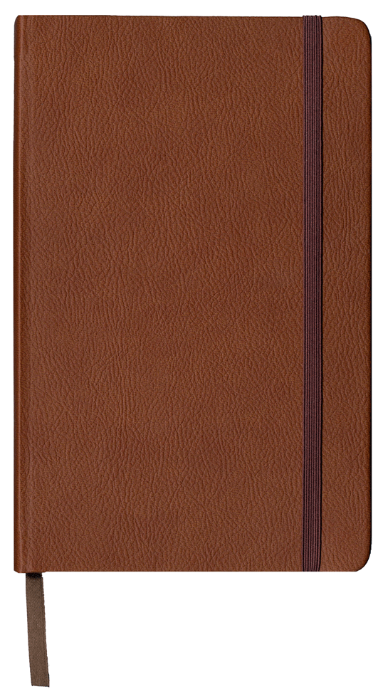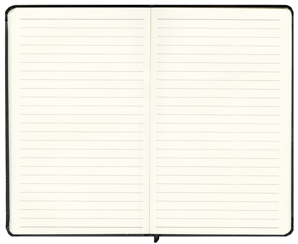 - Lay-flat sewn bound notebook with 192 ruled cream 5" x 8" pages.